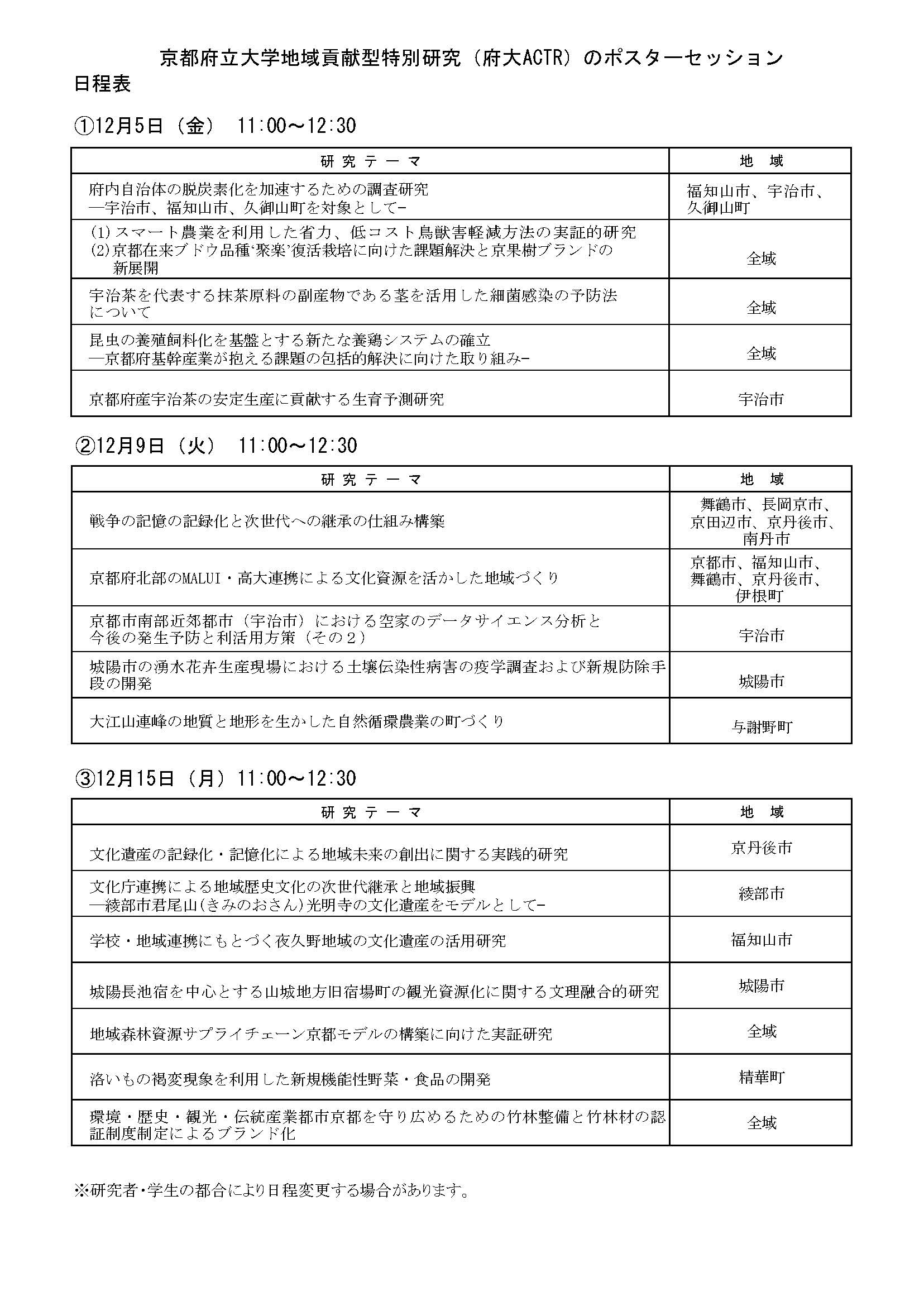 【開催案内】京都府議会棟にて、府大ACTRポスターセッションを開催します(12/5、12/9、12/15)