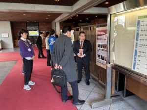 12月定例会の会期中、3日間にわたり、2024年度に採択された18件の研究成果について、研究に関わった教員および学生がポスターを用いて、個別に説明しました。毎回、20名前後の京都府議会議員の参加があり、活発な意見交換がなされました。