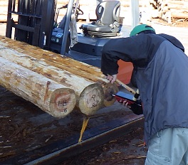 今回、府内のJAS製材工場の協力を得て、府内で建築中の小中一貫校に使用される実際の丸太を対象に強度測定を行い、歩留まり向上効果等の実証調査を実施しました。