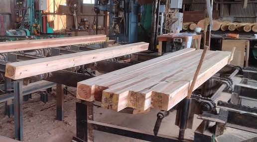 今回、府内のJAS製材工場の協力を得て、府内で建築中の小中一貫校に使用される実際の丸太を対象に強度測定を行い、歩留まり向上効果等の実証調査を実施しました。