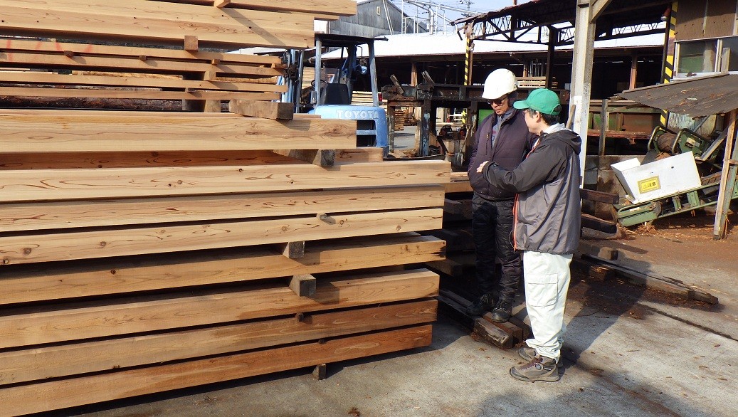 木材は自然素材であるため、製材・乾燥後にはじめて強度が把握できることが多く、丸太取引では強度情報が十分に活かされにくいという課題があります。本研究では、京都府森林技術センターと開発したスマートフォンにより強度を推定するアプリを活用し、丸太段階から強度情報を見える化することで、需要(求められる強度性能)に合わせた供給や適材適所の利用につなげます。